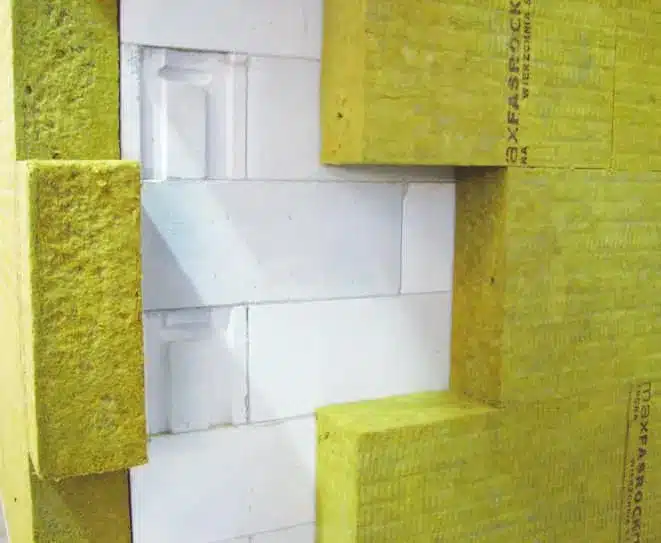 Gładkie bloczki Optimal z uchwytami montażowymi wymagają wypełniania spoin pionowych. Bloczki o gr. 12 cm stosuje się do budowania ścian działowych.